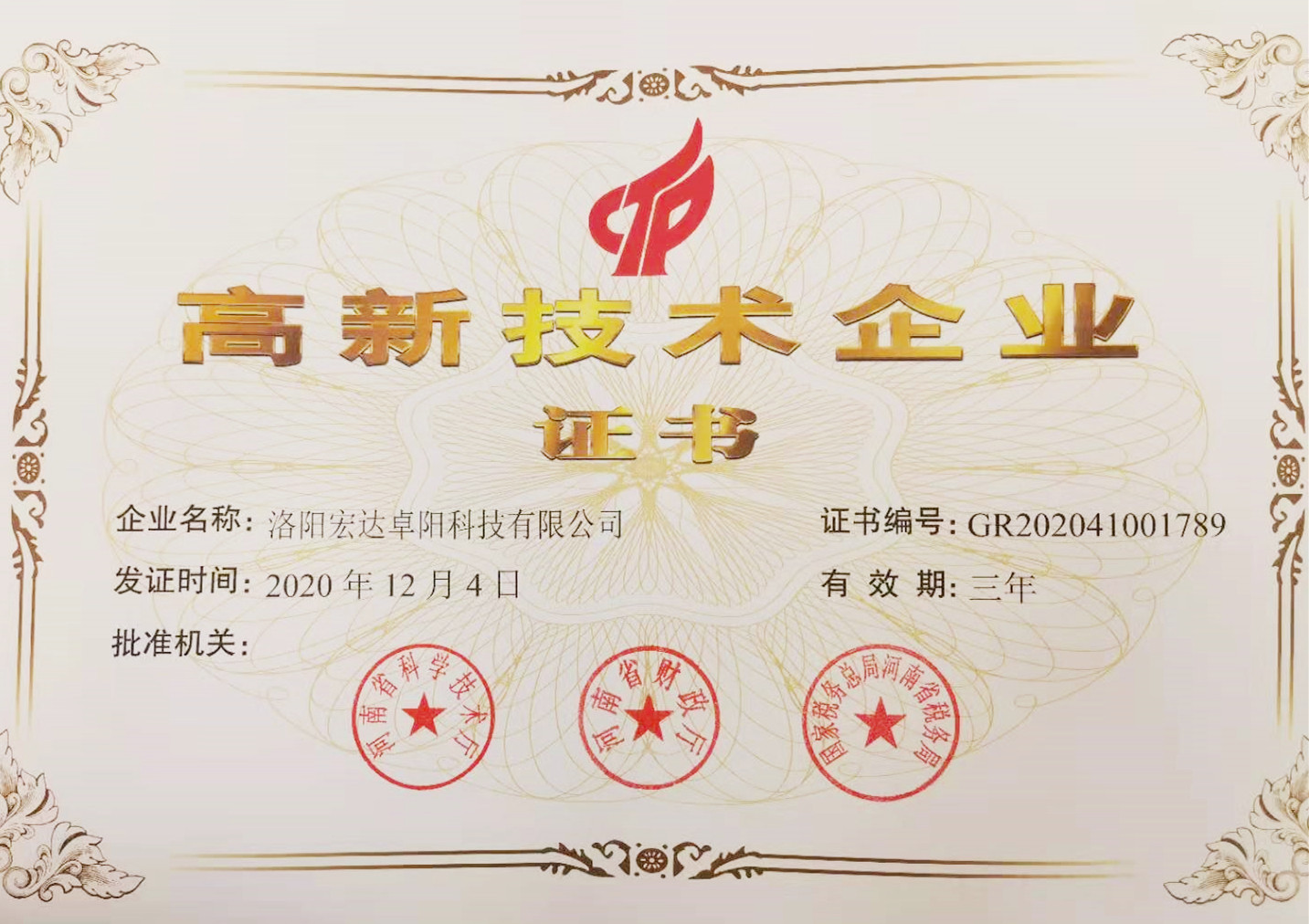 公司先后獲得洛陽市“模范職工小家”、國宏集團“五星企業(yè)”、孟津區(qū)安裝施工“明星企業(yè)”、安全生產(chǎn)先進單位、A級納稅企業(yè)等榮譽。公司被評為國家級科技型中小企業(yè),擁有河南省工程技術(shù)中心、洛陽市企業(yè)研發(fā)中心,自主研發(fā)并取得16項專利。